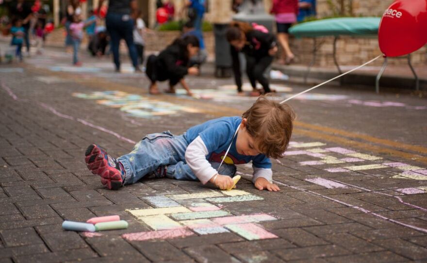 Teams will create intricate 8 by 10 chalk murals. Twenty thousand people will be playing in the streets. They'll have food trucks and a lot more.