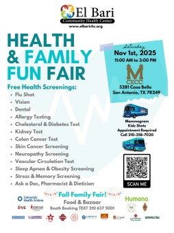 For Mammogram, Kids Vaccination registration call 210 358 7020