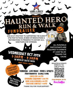 The Haunted Hero Run & Walk Fundraiser invites the community to gather on October 29, 2025, at the historic VFW Post 76 for an unforgettable evening of fitness, fun, and purpose.