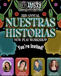 San Antonio, TX — Teatro Audaz proudly announces the return of its 3rd Annual Nuestras Historias Playwright Workshop, a new play development series celebrating original works rooted in cultura, community, and lived experience. Through staged table readings and post-show talkbacks, Nuestras Historias invites audiences into the creative process while uplifting powerful voices and stories that reflect our communities today.