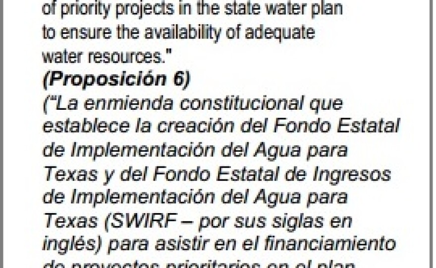 The proposition is an amendment to the Texas constitution that would take $2 billion from the state’s Rainy Day Fund and place it into a sort of bank. Calvin Finch, director of the Texas Resources Institute, said the funds would then be loaned to cities and authorities who are creating projects to treat brackish water or reuse waste water.