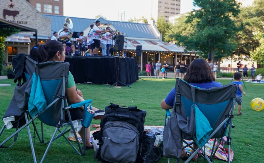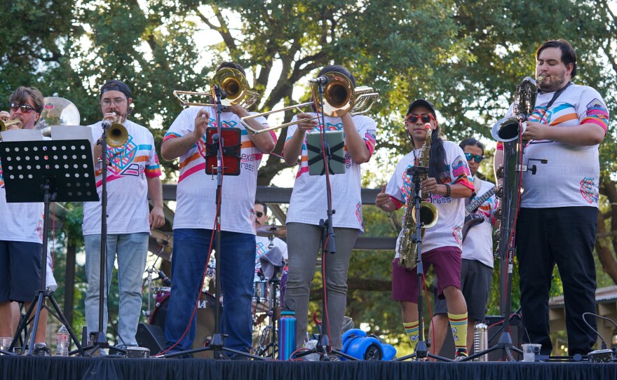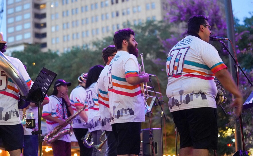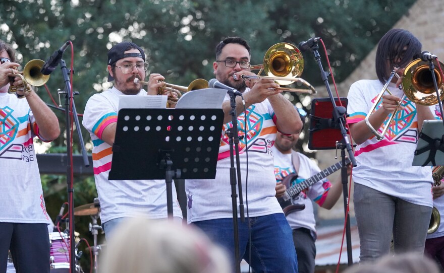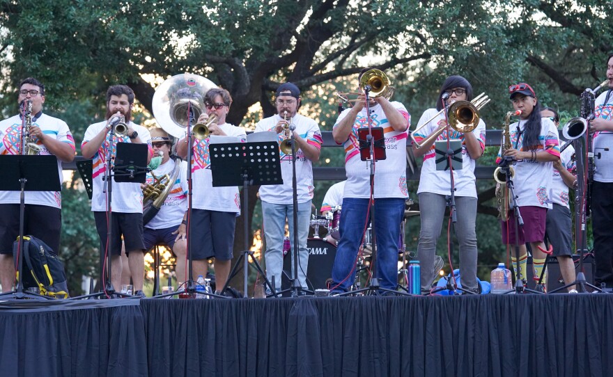 BexarBrass is a big-band brass ensemble that brings the sounds of San Antonio, TX blended with New Orleans Jazz, Funk, and Rock. They performed for our first in-person Summer Night City event series, live at Legacy Park in downtown San Antonio.