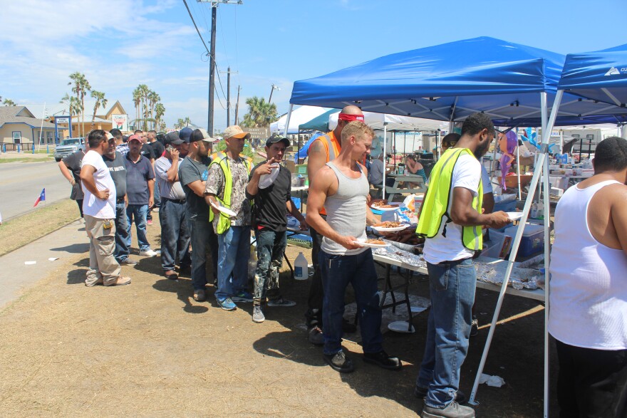 There’s at least three barbecue pits going today. Bobby Stevens and his wife came to Port A from San Angelo to help. "And I’ve been doing demolition on houses everyday, and it’s slowing down a little bit so I volunteered to come over here and cook,” Stevens says.
