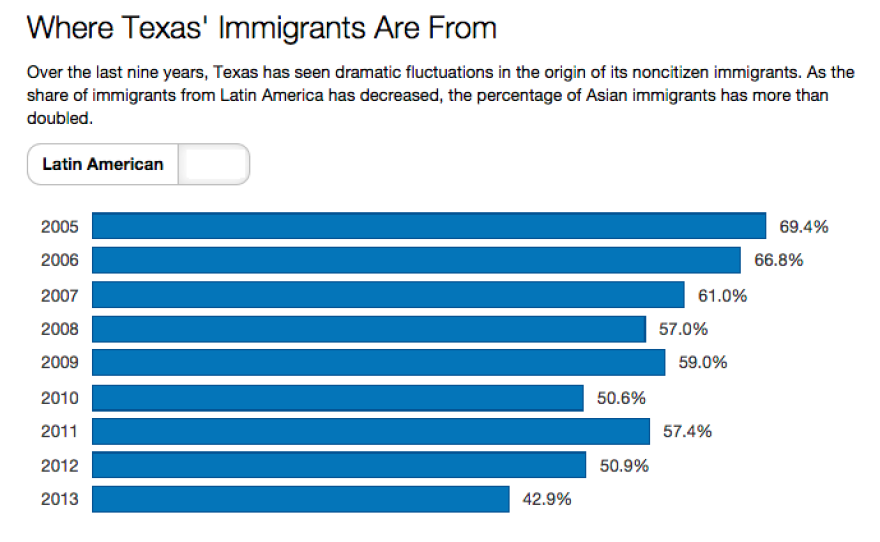 The 50,969 Asian immigrants who moved to Texas in 2013 was more than double the number of immigrants who arrived in 2005.