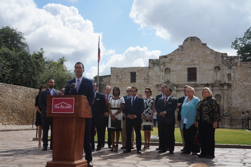 State and local officials gathered Wednesday at the Alamo to highlight state funding allocated to preserve and develop the historic site.